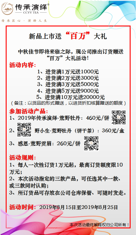 传承演绎白茶隶属于福建省传绎茶业股份有限公司旗下品牌,传承演绎“专注”福鼎白茶核心产区“山头茶”研制、栽培、生产、加工、销售及白茶文化传播,用心打造“山头茶”匠心品牌引领者;传承演绎制定“山头茶”的战略定位,并提炼出了“传承匠心,演绎人生”的品牌精神。“传承传统工艺,演绎白茶之美”的品