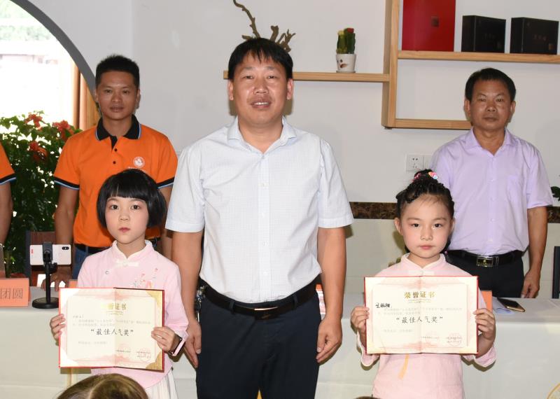 在结业典礼上,微商协会会长章文财、常务副会长徐团圆、副会长汪乔宝和汪永煌以及来自感德铁观音制作技术研究会会长陈清元分别为获得“小小茶艺师”“小小评茶员”的学员们颁发证书。镇人大主席张炳灿分别为获得这次活动的最佳人气奖、及获得本次活动前三名的优秀学员颁奖,还特别为宣传推广茶产业做出突然贡献的协会成员颁发贡献奖。