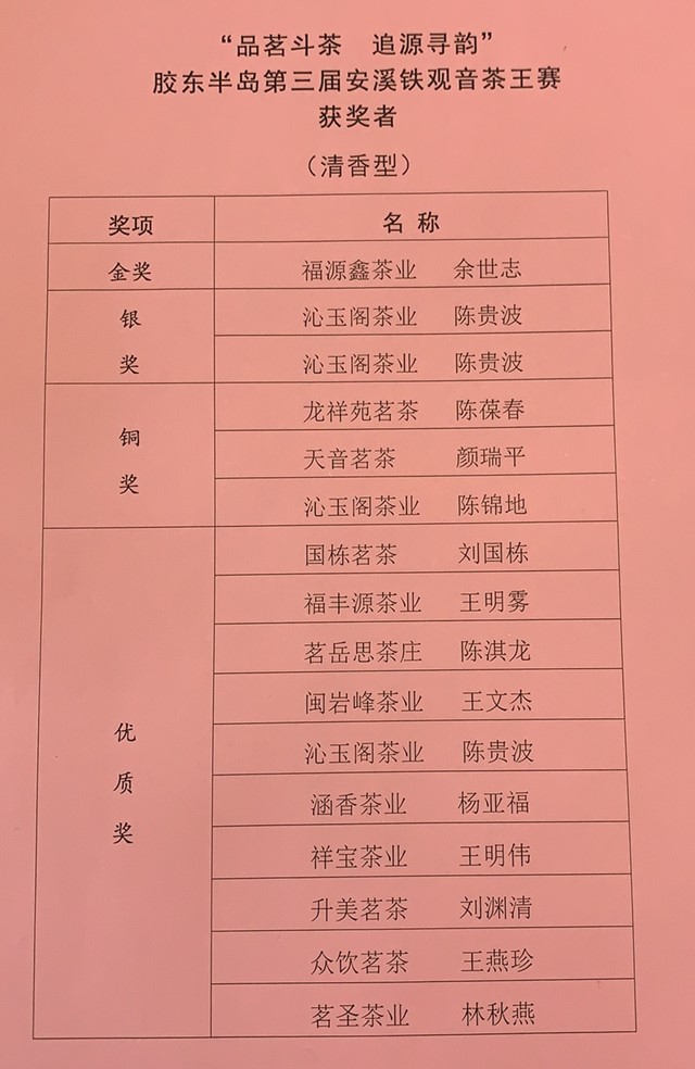 胶东半岛第三届秋季安溪铁观音茶王诞生