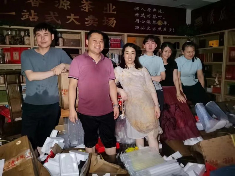“大雨过后,我老婆的两个闺蜜一连几天来店里帮忙清理,店里的每个员工都非常的辛苦,不怕脏不怕累。我的一个朋友看店里比较潮湿,赶紧把除湿机给送过来用;还有很多朋友给我们店里送来肘子、烧饼、烤鸭、水果等等;还有很多客户看到店里损失惨重,打电话发微信问我有没有急需处理的茶叶,尽自己所能帮忙处理点货......灾难之后让我看到了更多的大爱。”说到这些林培养充满了感激。(赢长)