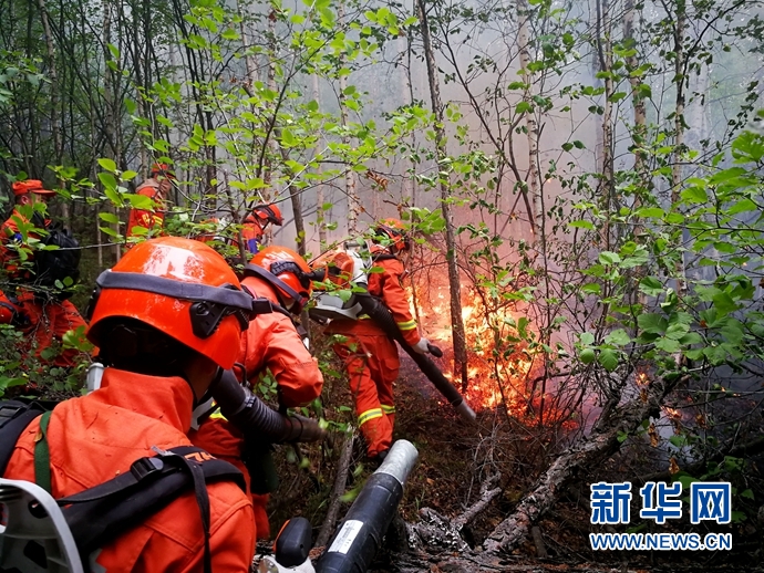 6月3日,武警内蒙古森林总队的官兵在阿巴河林场扑火。据内蒙古大兴安岭森林防火指挥部消息,发生在内蒙古大兴安岭北部原始林区和汗马国家级自然保护区的两起森林火灾3日仍在持续。截至3日凌晨,汗马火场已扑打火线逾11公里,阿巴河火场累计扑打火线逾5公里。内蒙古自治区防火指挥部门已调集近4000名扑火人员和大型设备赶赴两处火场进行扑救。新华社发(张蒙 摄)