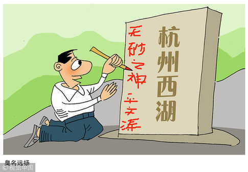 国庆期间,杭州西湖景区的一块石碑被人肆意涂写。事情一经曝光,引发舆论强烈谴责,“你欠西湖一个道歉!”近日,这位名叫平文涛的乱涂乱画者被抓获,鉴于其多次实施破坏行为,社会影响恶劣,目前,景区公安以寻衅滋事罪对其依法刑事拘留。