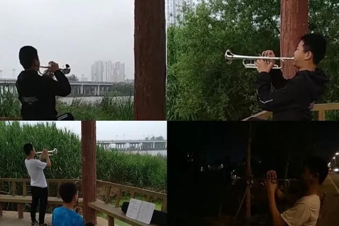 同时,为了让白一程开阔视野,马桢翔老师带他去北京、上海、西安听音乐会、参加专业集训、参加国际铜管艺术节,一方面让他学习交流经验,另一方面让他找差距,增强孩子学习的动力。功夫不负有心人,在师徒二人的努力下,白一程每天都在进步,专业水平一天一个变化。每天晚上都会坚持练习两三个小时,才回家完成学校作业,常常写作业到凌晨,即使这样,也不耽误他早上早起练会号,周末就更是连轴练习。白一程妈妈说,这两年来,他看到了孩子的成长,更看到了孩子的付出,有时候陪孩子做作业到凌晨,看着孩子那么辛苦,怕孩子休息不够,影响孩子身体发育,就劝孩子早休息,但是孩子善解人意的给妈妈说:妈妈,你先睡吧,别等我了,我写完再睡。正是孩子的努力,孩子专业进步的同时,文化课也一直名列前茅。