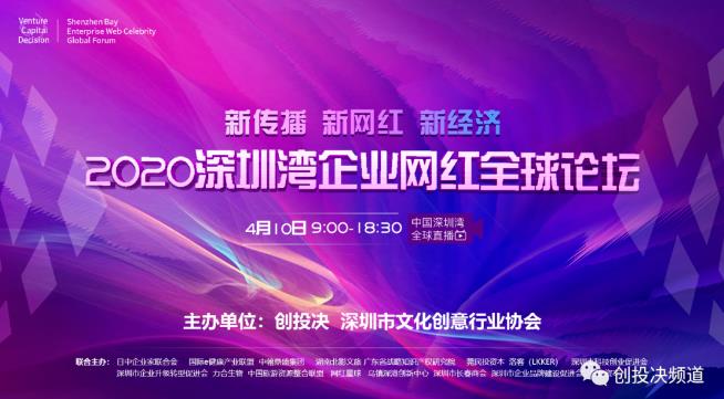 4月10日,由创投决、深圳市文化创意行业协会联合主办、40多家机构联合发起的,以“新传播、新网红、新经济”为主题的“2020深圳湾企业网红全球论坛”,通过网络直播、线上交流的特殊方式,为广大企业家提供了一场逆势而上、创新求变的智慧盛宴。
