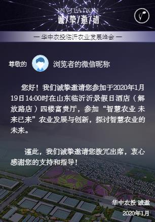 华中农投临沂农业发展峰会2020年1月19日邀请您智慧农业,未来已来 。