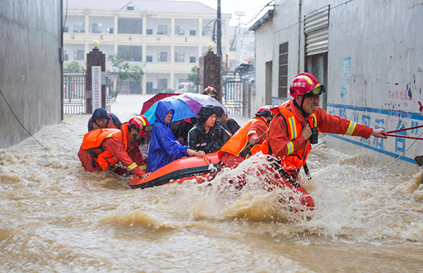 “奶奶别怕,骑我肩膀上,我背你下来。”橡皮艇上的消防员肩扛手托,将老人转移到橡皮艇上。为了避免从房顶下来给橡皮艇造成冲击,在转移出老人一家后,陈同录解下绑在烟囱上的绳子,直接跳入水中,然后再爬上橡皮艇。10时30分,7名被困人员被转移到安全区域。