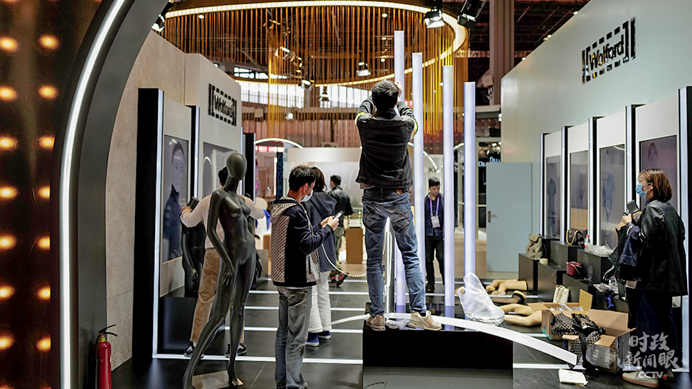 △进博会开幕前,工作人员做最后的整理、布展等工作。(总台国广记者李晋拍摄)