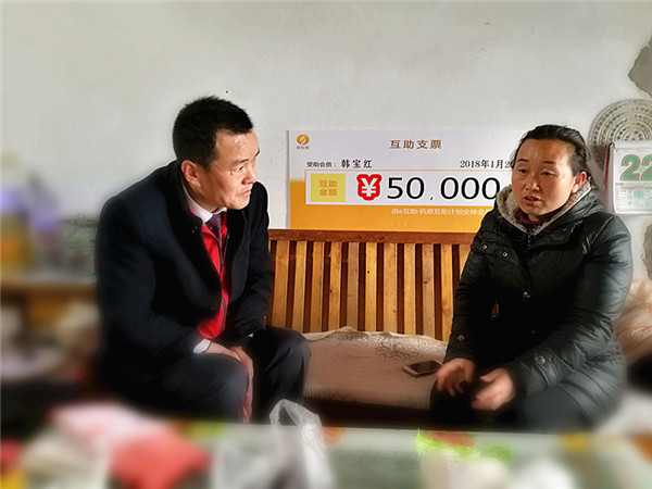1月23日,泛华临沂e互助携手临沂市生命关怀协会来到郯城县李庄镇,为e互助会员韩女士送来救助款5万元及部分慰问品,让这不幸的一家感到冬日里的温暖。