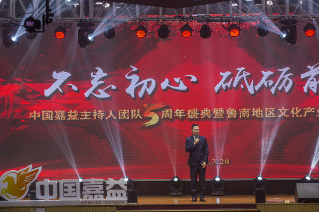 2019年3月20日晚,山东临沂喜事汇大酒店金色大厅,星光璀璨,光彩夺目,中国嘉益主持人团队成立5周年盛典暨鲁南地区文化产业交流大会在此盛大举行。