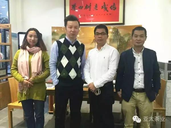 本刊主编茶业老徐(左二)与传成老树白茶董事长林清修(右二)、广州运营中心总经理林居能(右一)合影