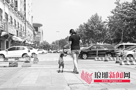 为防止狗乱跑伤人,李女士每次遛狗都拴绳。 记者 褚菲菲 摄