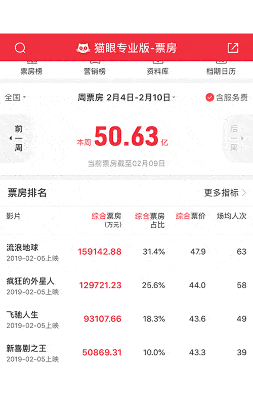 电影口碑对票房走势的影响十分显著,今年8部影片的票房成绩与口碑基本成正比。《流浪地球》目前在各大电影网站的评分最高,与评分较稳定的《飞驰人生》《熊出没·原始时代》都是票房一路攀升。而伴随评价口碑发酵,《新喜剧之王》排片量快速下落,从2月5日排片量9.7万场降到2月9日的3.5万场。其票房超过5亿元之后,逐渐被春节档期票房“第一梯队”拉开差距。