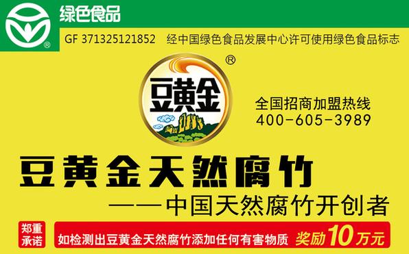 第一家在外包装上给予消费者郑重承诺:如检测出豆黄金天然腐竹添加任何有害物质奖励现金10万元