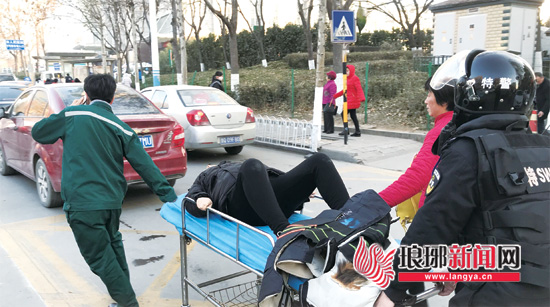 赶到现场后,特警队员卢立亭、张贺,急救员张怀友以及周围市民,迅速将孕妇抬上担架车,并往医院的方向狂奔。“当时就想着,越快越好,早一秒钟到医院,能让孕妇早一秒得到治疗。”张贺说。