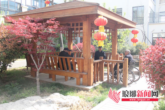 4月9日上午,临沂河东区九曲养老院内。老人们三三俩俩坐在院内园林般的广场上,悠闲而自得。凤凰岭常庄村的三无老人张书忠坐在院内的小亭子,同两个“老伙计”聊天。