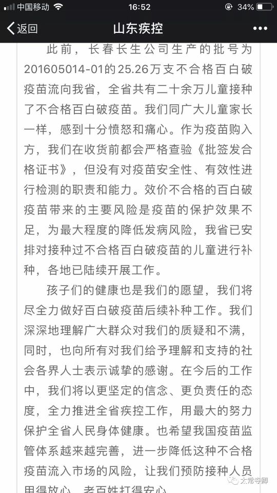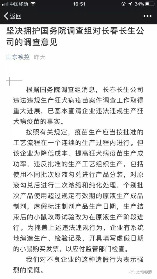 昨晚,山东疾控发出了《坚决拥护国务院调查组对长春长生公司的调查意见》。这篇文章,义正词严,根本就没感受到广大群众的焦虑和气愤,仍然在那里气定神闲地打官腔唱高调。写这篇文章的这些人,真是应该给他们孩子打上疫苗。
