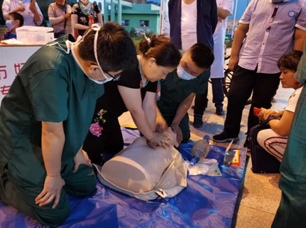 在临沂市人民广场,来自临沂市人民医院的医务人员为市民开展心肺复苏、中医刮痧以及健康咨询服务,普及户外活动急救必备技能,提供专业的妇产儿科、老年人的健康管理知识咨询。通过现场演示、发放宣传单、集中宣讲等方式向群众宣传急救知识和疾病预防知识知识。