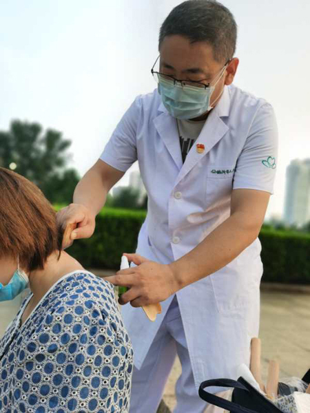 在北城新区五洲湖广场,来自临沂市中医医院北城医院急诊科,内科,骨科,针灸推拿康复科,治未病中心等专业专家及医疗护理人员十余名,现场进行了义诊,咨询,耳穴压豆,心肺复苏急救演练和培训等医疗健康活动。志愿者们还向观众免费发放了八段锦养生光盘、中医药保健香包、健康知识宣传册等相关物品,将健康的知识理念送到大家手中。