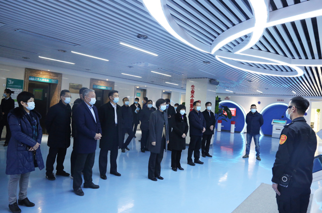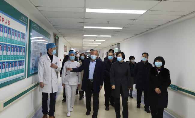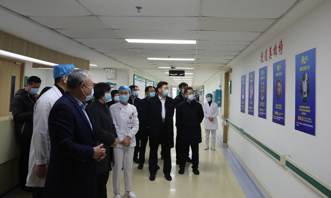 现场考察临沂市人民医院东医疗区,了解医院疫情防控措施落实情况和负压病房建设情况;