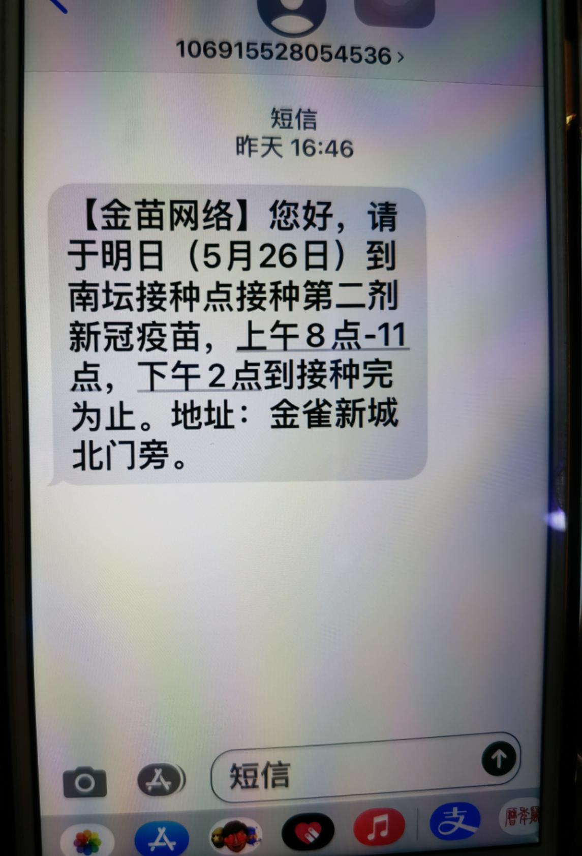 为有针对性地接种疫苗,金雀山街道社区服务中心自费使用金苗系统精准发送短信至居民手机,提醒居民接种的疫苗序号、时间及地点,以便居民区分第一、二针疫苗,避免混淆白跑一趟。