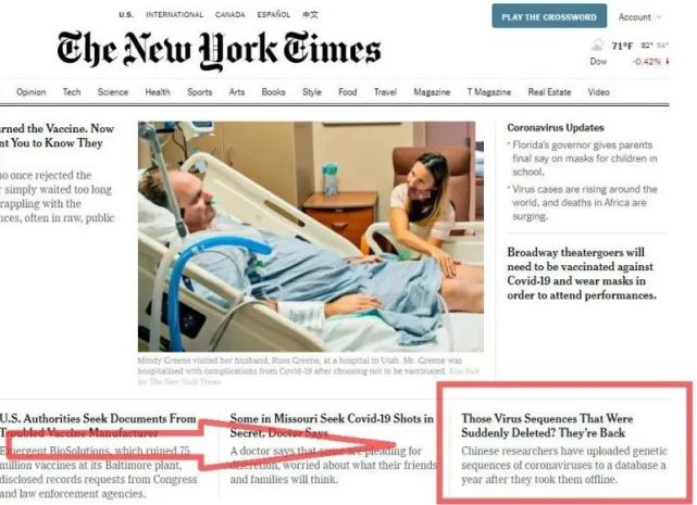 《纽约时报》也注意到了相关舆论,其专栏作家卡尔·齐默7月30日发表报道,援引了新华社记者对中方科研人员的专访,并采用了专访中两个核心观点:首先,删除数据是技术原因,与所谓掩盖新冠疫情起源无关。其次,涉及的数据采样时间较晚,对新冠溯源毫无价值。