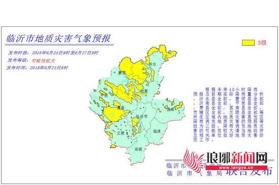 7月9日10时,市国土资源局和市气象局联合发布临沂市地质灾害气象预报。