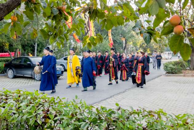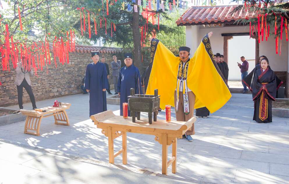 大鼓、铜锣阵阵,古典乐曲悠扬,众人身着汉民族传统服装,列队立于庙前,近日,由山东观唐盛世文化发展有限公司投资恢复重建的汤神庙,在观唐温泉落成。