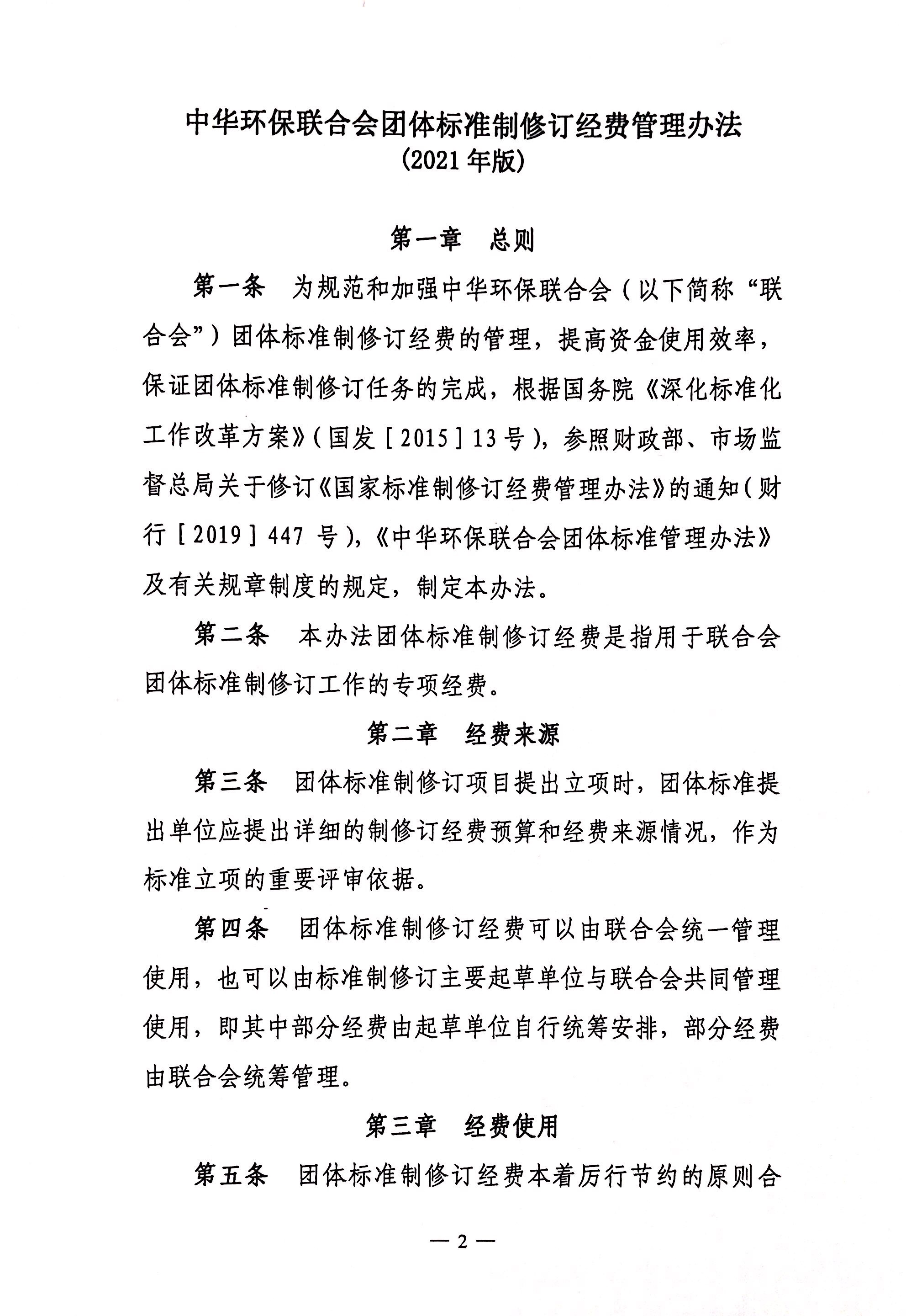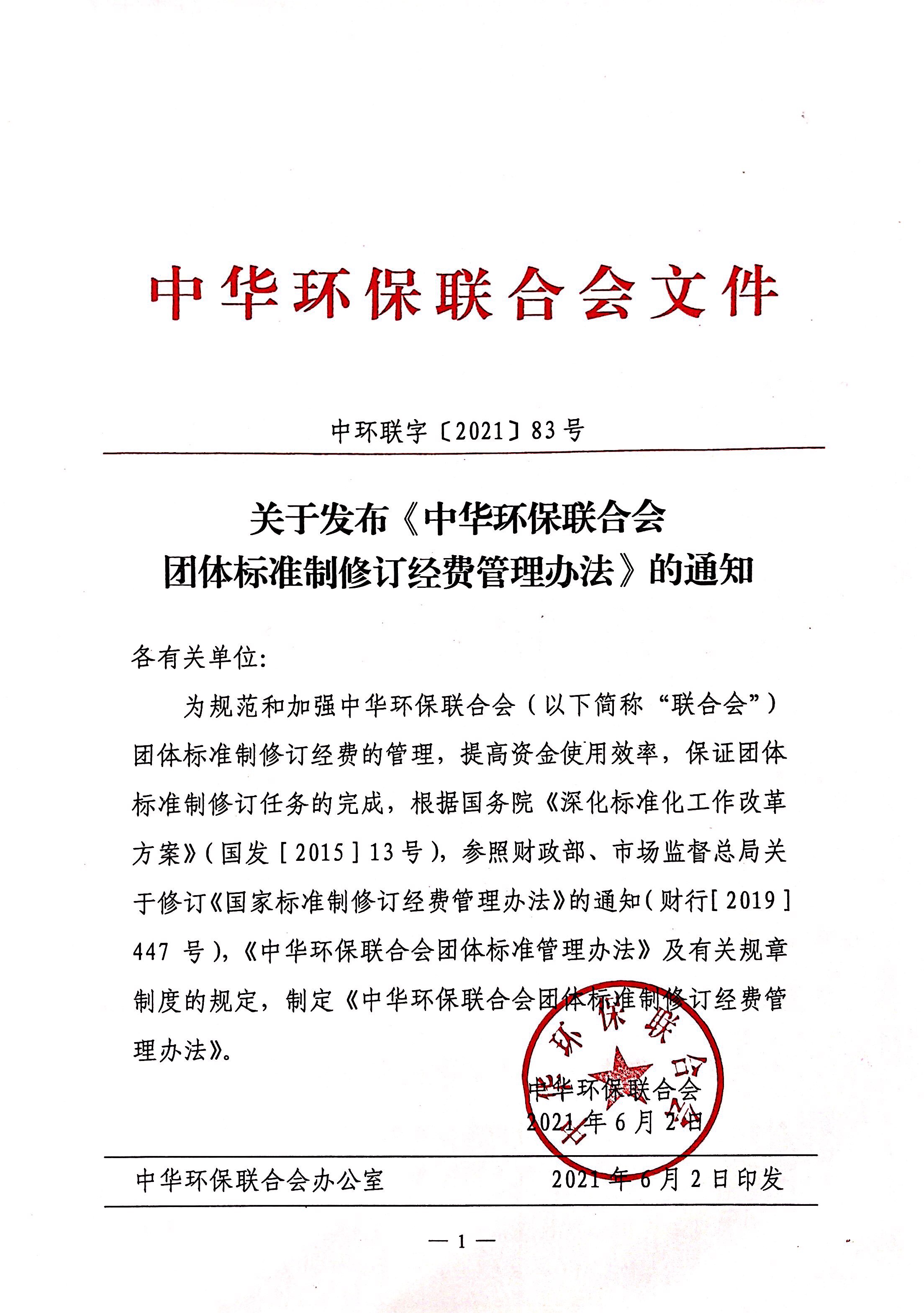 关于发布《中华环保联合会团体标准制修订经费管理办法》的通知
