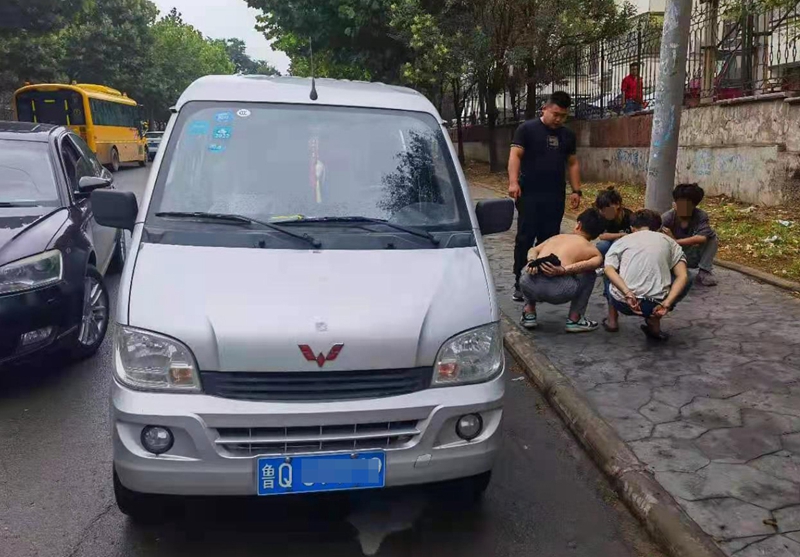 确定了嫌疑人后,民警根据面包车的轨迹展开追查,发现这辆面包车出了主城区后一路向西,到了兰陵县短暂逗留后又驶往费县,最终来到了平邑县。民警火速前往平邑县追查,获知面包车在平邑县城消失。民警分散开来,在附近区域展开摸排,下午4点,有民警发现,被盗的面包车正停放在莲花山公园附近一条马路边上,车内人员正呼呼大睡。
