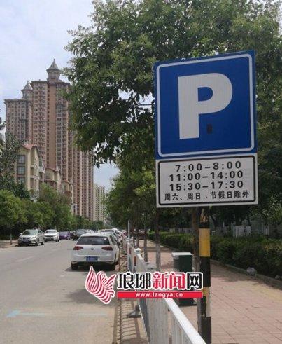 但记者注意到,在沂河实验学校往南约100米处,道路东西两侧各设有一块交通标示牌,上面注明了停车时间为:上午7点到8点,中午11点到下午14点,下午15点30分到17点30分,也就是说,超出这3个时间段,是不允许停放车辆的。