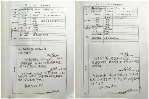 (写满“合格”、“基本合格”的《房屋验收单》)