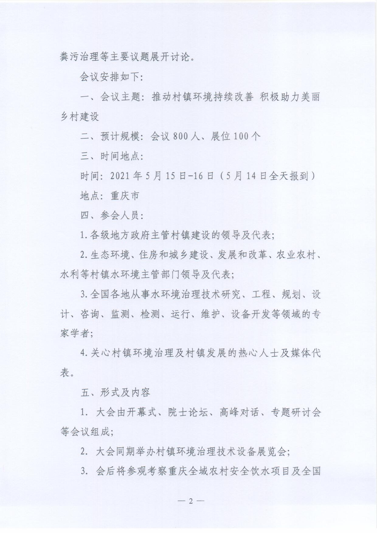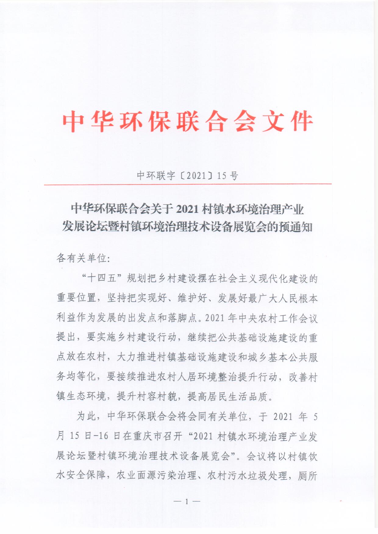 关于2021村镇水环境治理产业发展论坛暨村镇环境治理技术设备展览会的预通知