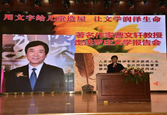 曹文轩教授作为教育部编写义务教育阶段语文教材的主编之一,针对当前部编本教材的使用,结合着具体的课例提出了自己的语文观:语文能力是其他各学科的基础,要做到人文性和工具性的统一,要注重审美教育和情感教育,要高度重视语文教学与写作能力培养的关系,要努力落实朗读的重要性,要高度重视方言自身的意义,要积极吸纳作家参与编写教材。报告会上,曹文轩教授还与罗庄区(教育系统)文学写作社团骨干会员进行了面对面的交流。