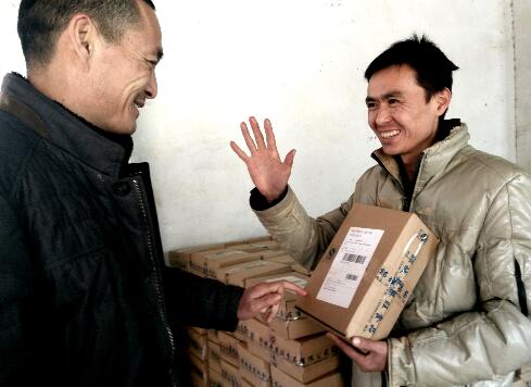 “江西省赣州市于都县贡江镇老三中对过采味林的刘婷老板,每月订购10大箱黄金豆。今天的货刚刚发走,货款直接打账户很及时。”这是郯城县马头镇北花园社区东爱国村会计柴纪磊,犯“网瘾”销零食的真实记录。1月11日,记者见到了这位犯“网瘾”销零食的农村会计。据介绍,马头镇北花园社区东西爱国两村是郯城县花生米制品最大的加工生产集散地,每天外销花生米制品超过上百吨。他便依托资源优势,在不影响正常工作的前提下,注册网店了老柴家店铺“农家乐园”销售油炸食品,没有想到“网瘾”越玩越上瘾,网店规模越来越大。每天下来谈妥了不低于五六百单生意,月收入总额超过工资八倍多。春节临近,油炸酥香食品销售火爆,订购货物逐渐增加,畅销全国各地。(高军 摄影)