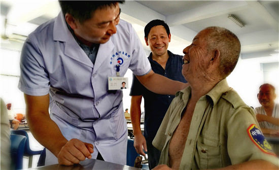 彭凯迪和江岩团队用娴熟的技艺为敬老院的老人们义务理发。