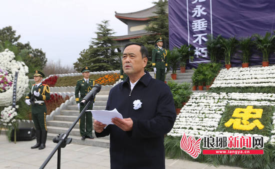 临沂市副市长、公安局局长李登全同志在仪式上高度评价了王成龙烈士的事迹,指出王成龙烈士在身边战友生命受到严重威胁的关键时刻,挺身而出、舍己救人的英雄壮举,充分体现了中华民族临危不惧、见义勇为的传统美德,体现了当代军人敢于担当、不怕牺牲的优秀品质,体现了沂蒙红色精神不朽的传承。王成龙烈士为临沂人民树立了光辉的榜样,充分彰显了弘扬社会文明新风的强大正能量。他是当代军人的优秀代表、临沂人民的骄傲。下一步,临沂市要积极做好烈士亲属的各项优抚工作,帮助他们解决在生活中的困难。作为英雄的家乡,全市要掀向成龙烈士学习的热潮,学习成龙烈士践行社会主义核心价值观、始终把人民利益放在首位的奉献精神,学习王成龙烈士大公无私、勇于牺牲的革命情怀,牢记党的宗旨和使命,淡泊名利,以身作则,率先垂范。市委、市政府将团结带领全市干群,以成龙烈士为榜样,克服一切困难,建设家乡,为告慰英烈、为人民群众的幸福明天而努力奋斗!