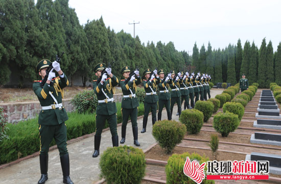 鸣枪礼兵在陵园一侧一线列队,三声清脆的枪声划破低沉的云幕,用特殊的方式送别英雄。