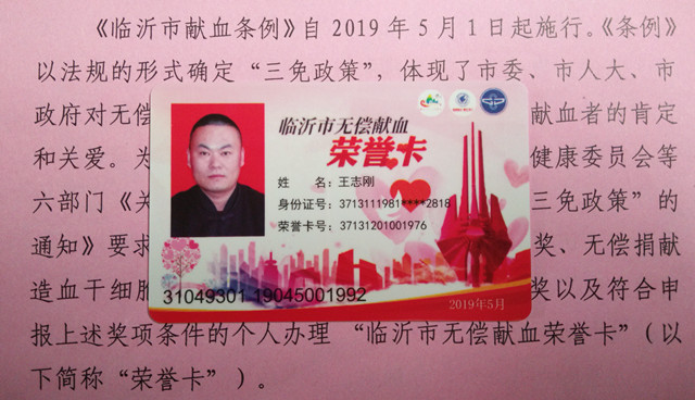 目前,临沂市共有9535名献血者符合荣誉卡申办条件,已有1600余名献血者提出申请,资料整理完成后分批办理。现已完成首批荣誉卡办理466张,5月1日即可正常使用。据了解,办卡工作将于7月底全部完成。