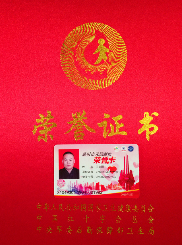 祝贺易互赢新媒体有限公司董事长;临沂玉虚文化传媒有限公司总经理;临沂民生网编辑;临沂市社会爱心联合会副秘书长;世界旗袍联合会临沂分会执行会长王志刚同志获临沂市无偿献血金奖及“三免政策”荣誉卡。