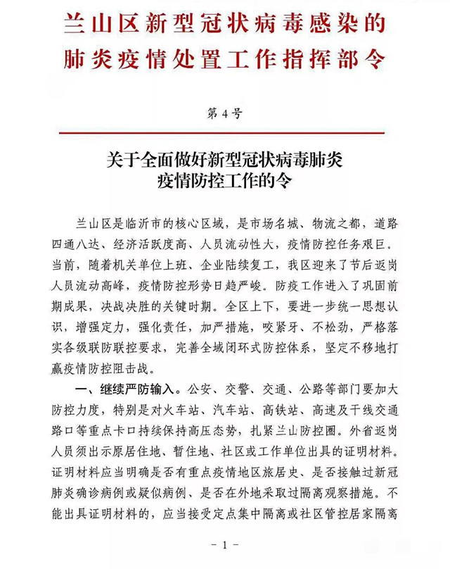 来源:兰山疫情防控处置指挥部