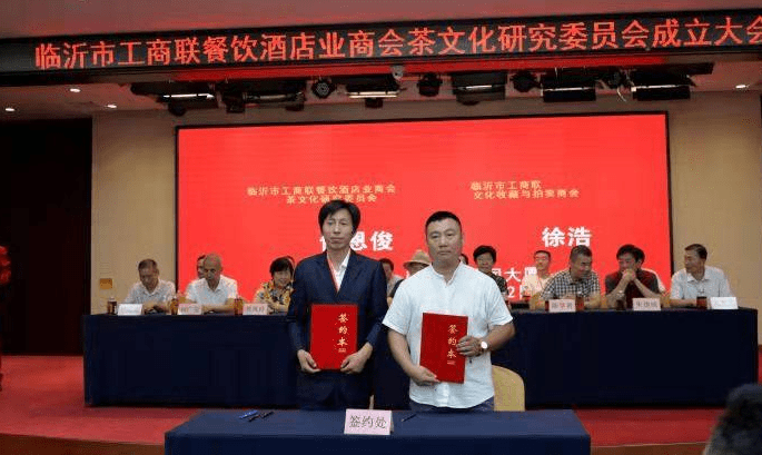 临沂市工商联餐饮酒店业商会茶文化研究委员会是由临沂市茶企业、茶商、学校、茶文化研究者、茶人发起并自愿组成,旨在研究、普及推广茶文化。临沂市工商联餐饮酒店业商会创始人、执行会长朱英杰对胡伟的当选表示祝贺。有关领导共同为市工商联餐饮酒店业商会茶文化研究委员会的成立揭牌。日照银行为茶文化研究委员会授信6亿元,助力临沂茶叶市场的发展。茶文化研究委员会现场还与有关企业进行了合作签约。
