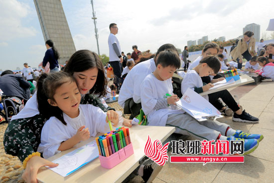环保小志愿者现场作画,描绘生态临沂。