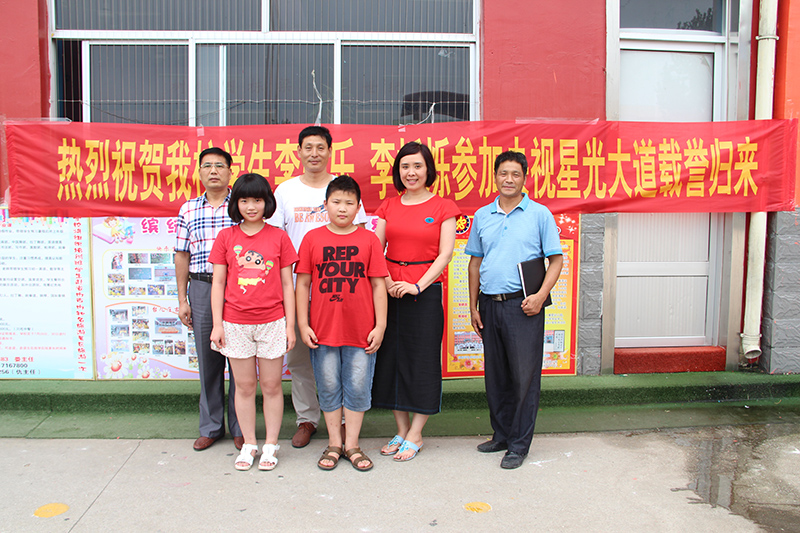 719日下午,临沂童星实验学校总校院内一片欢腾。童星学校所属实验小学的老师和同学们、沂蒙晚报和鲁南商报的记者等六百余人,齐聚总校办公楼前,欢迎刚刚参加央视 星光大道节目表演的李乐乐、李烁烁两位同学载誉归来。