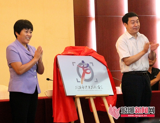 临沂市人大常委会副主任丁善余、临沂市体育局局长刘艳芬为协会揭牌