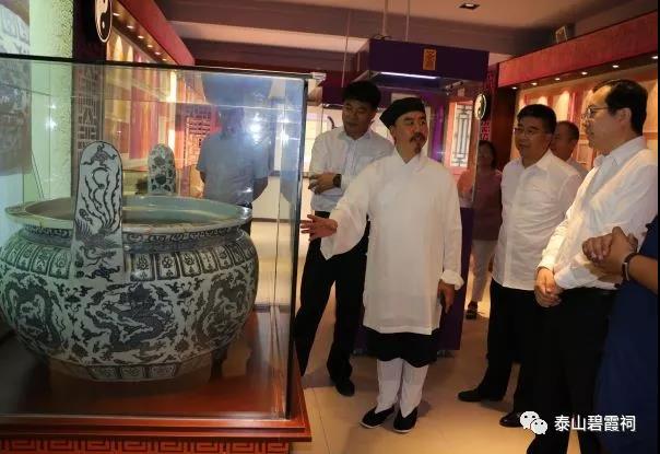 11日下午,考察组一行来到泰山道教文化馆,中国道教协会副会长、山东省道教协会会长、泰山碧霞祠住持张诚达道长陪同考察组参观了泰山道教文化馆的各个展厅,详细介绍了泰山道教文化历史及发展现状。