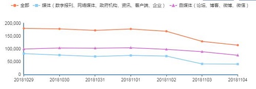 2018年10月29日至11月4日,人民网舆情数据中心众云大数据平台共监测涉及文旅信息994042条,其中涉旅信息约占比37.2%,文化信息占比约62.8%。据人民网舆情数据中心众云大数据平台分析,今日头条、搜狐、一点资讯成为信息传播的主要渠道。本周新闻传播量整体较为平稳,自媒体端传播量相对较高,且在周末时间段较为明显。