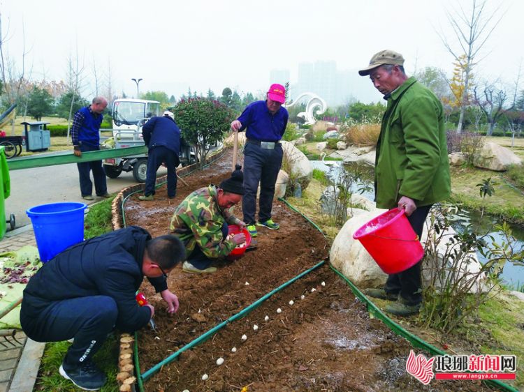 11月22日,在临沂市园博园,工作人员栽植郁金香。据悉,为献礼改革开放40周年,园博园管理办公室将在园博园栽植郁金香4万余株,目前栽植工作基本完成,预计冬末初春即可绽放,届时市民可在园博园内欣赏到大片的郁金香花海。