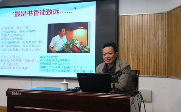 读书要读中外名著,古今经典好书都是人体的“维生素”,阅读“名人传”,汲取正能量。徐雁就读什么样的书给大家提出了建设性意见。面对瀚如烟海的书籍,他还分别就如何给孩子和成人选择合适的阅读书目做了方法分享。“天地阅览室,万物皆书卷。”他倡导“大阅读”。