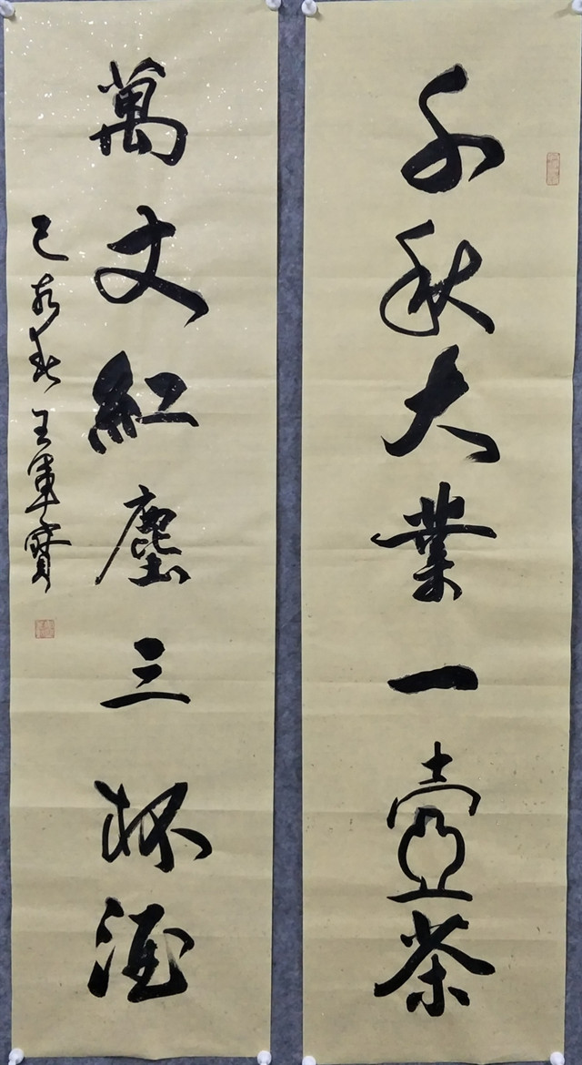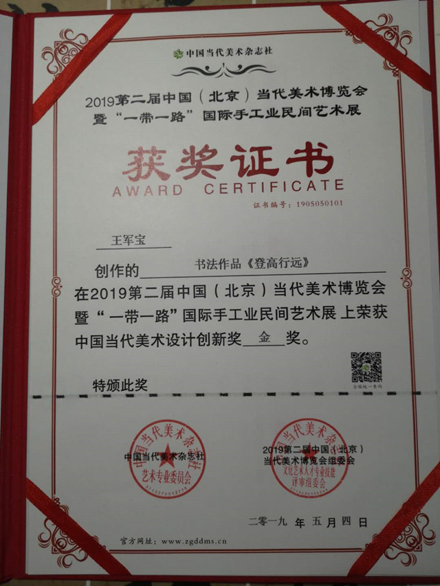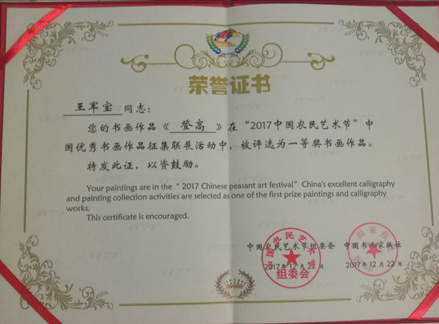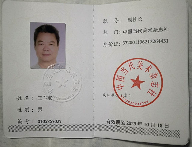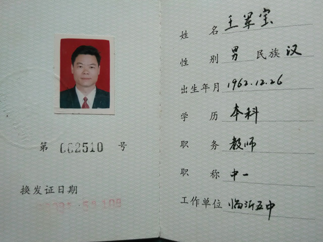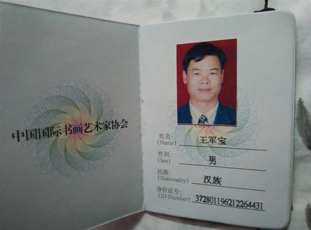 王军宝字惠生,临沂人。早年师范毕业,舌耕卅八载,爱读中国书,爱写中国字,爱着中国装,爱吃中国饭。以儒学为基亦傍窥佛道,为人子仅能不使父母蒙羞而已矣,若显亲扬名远未能也;至为努力,未能使父母尊显;教育子女成人而已,未能为国之良才,深以为恨。系以卧冰求鲤之圣王祥和舍命护兄之友王览为第一世的琅邪王氏第五十二世孙。