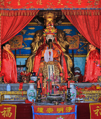 此为许祖师之尊号。天尊,乃对得道神仙之尊称,为玉皇加封。元代道士刘玉以“净明”为教派名称,意为“由真忠至孝,复归本净元明之境”,故曰“净明”。经典为《净明忠教全书》,刘玉奉许逊为教祖,正式创立“净明忠孝道”。